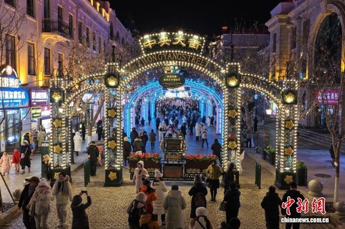 黑龍江哈爾濱:創(chuàng)意燈飾點亮百年中央大街