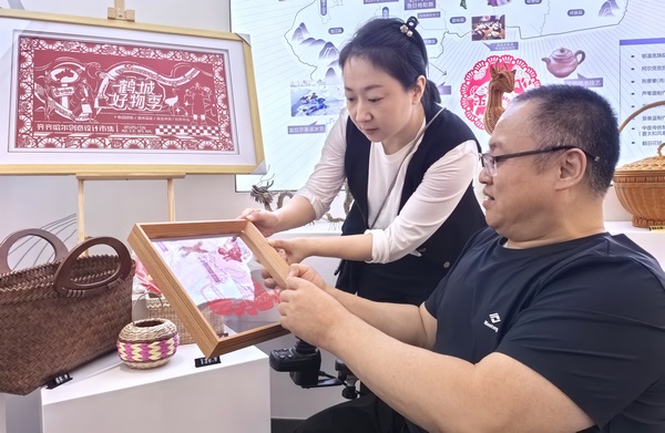 非遺文創(chuàng)展區(qū)同樣精彩紛呈。“龍江剪紙”作品色彩鮮明,融漢、蒙、滿等多民族文化和關(guān)東風(fēng)情于一體,集觀賞性、表演性、實用性和體驗感于一身,其中“鶴城好物季”主題剪紙尤為吸睛,成為創(chuàng)意設(shè)計港永久收藏品;手工編織產(chǎn)品以花線、玉米葉為材,化身精致飾品,小巧可愛、頗具匠心;拓印技藝推陳出新,創(chuàng)作出拓印中國結(jié)、團扇“福”字等作品,使傳統(tǒng)手藝成為家居裝飾和饋贈親友的特色選擇。
